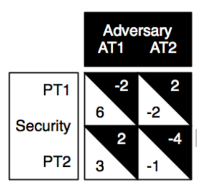 | 不妨假设 则会有一半的几率patrol T1,另一半几率patrol T2 | AT1的期望收益为 AT2的期望收益为 那么 |