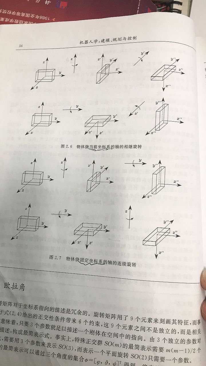 时,先计算 ,即 被 旋转,那么此时变换矩阵的参照已改变(当前坐标系),运算结果再去旋转 。第n步中新的旋转矩阵为 ,以最新的参照系作为基准,对 进行旋转