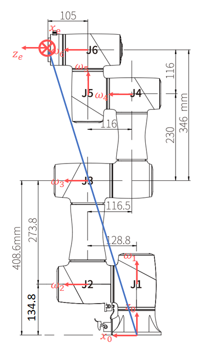 轴在世界坐标系中的方向。 为世界坐标系中的 ,即 。 - 第四列前三个参数为末端执行器在世界坐标系下相对原点的位移(蓝色箭头),