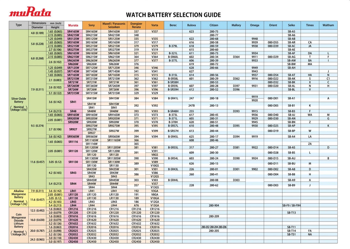 | AG3/LR41/RW37/392/192/L736 | 7.9 | 3.6 | 1.5V | | |