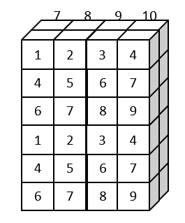 a=np.array([[[1,2,3,4], [4,5,6,7], [6,7,8,9]], [[7,8,9,10], [9,10,11,12], [11,12,13,14]]])