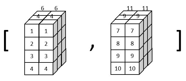 | np.stack([a,a],axis=0) (2,2,3,4) extra axis->new axis0 old axis0->new axis1 old axis1->new axis2 old axis2->new axis3 | ![]() |