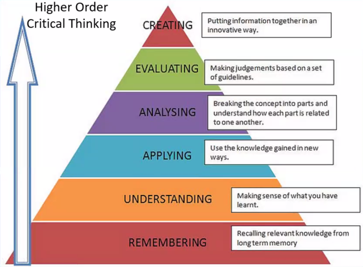 - Critical thinking, in which students analyze and evaluate
